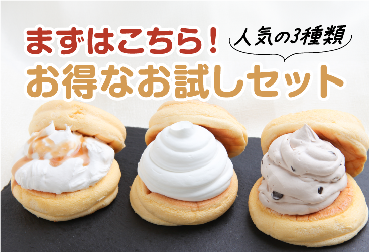 【お試しセット】ふわふわパンケーキ3種3個入(プレーン・塩キャラメル・Wチョコ)
