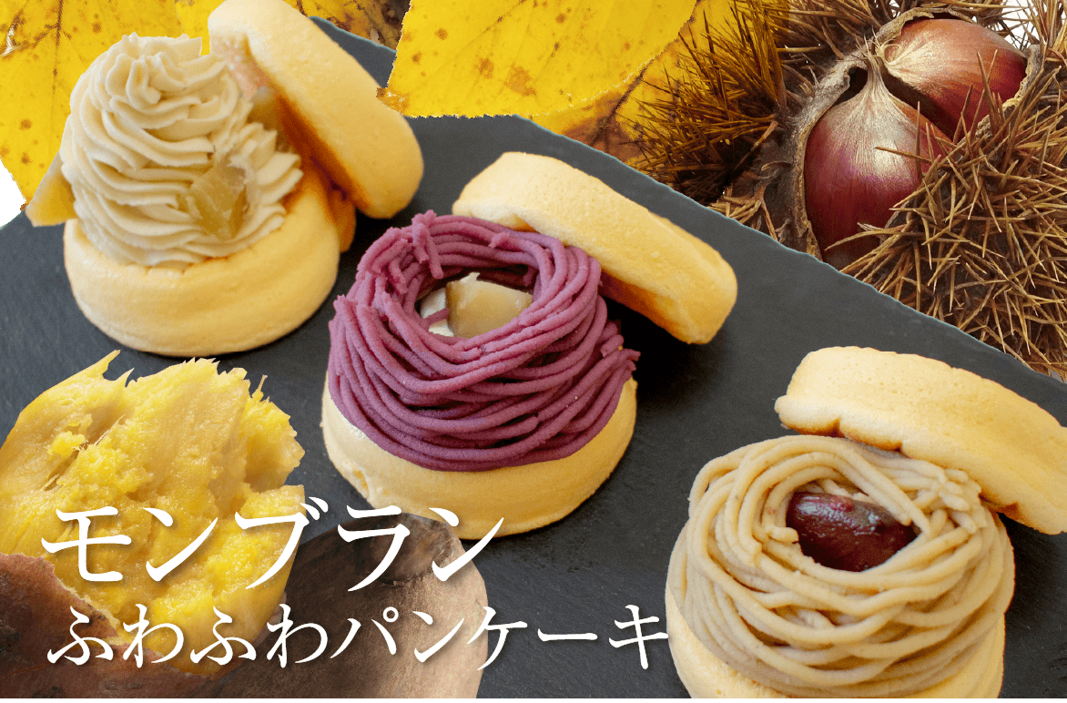 モンブランふわふわパンケーキ3種3個入(紅はるか・紫芋・和栗)